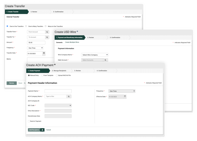 Pay bills online—quickly and easily. Set up one-time or recurring payments without writing or mailing checks. Our multi-user platform saves you time, reduces errors, and eliminates postage costs.