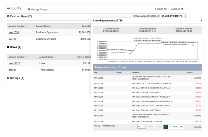 Easily manage all your business accounts in one place. With Treasury Management, you can view all your accounts in a single dashboard—giving you a complete picture of your finances. Features include:
